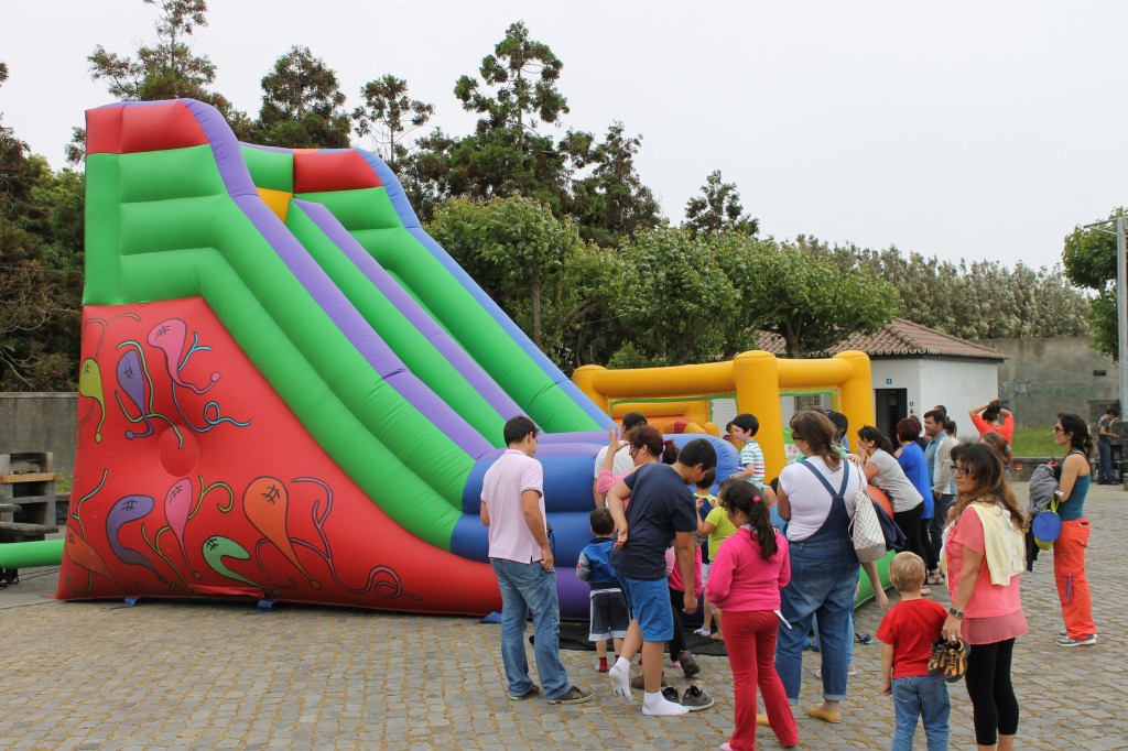 Tarde de animação infantil com insufláveis e touro mecânico no Jardim D. Leonor Afonso.